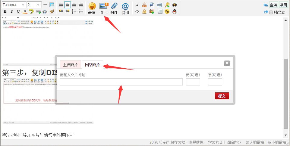 第一步:打開(kāi)論壇發(fā)帖編輯器