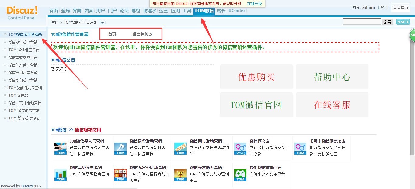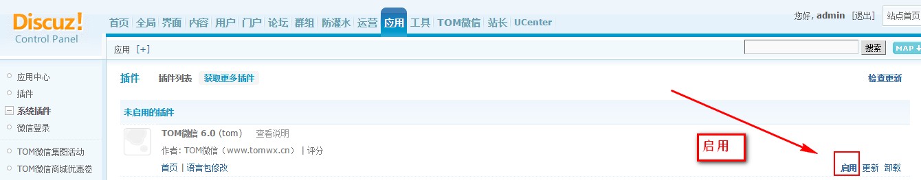 第二步:進入論壇后臺應用管理 》》 安裝 》》 點微(插件管理工具)